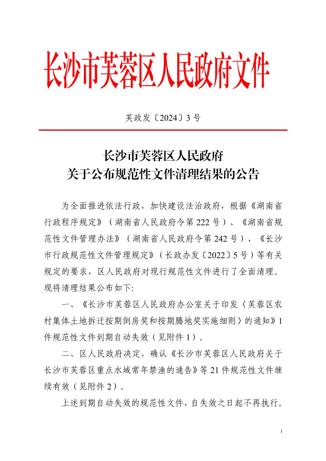 长沙市芙蓉区人生就是博关于公布规范性文件清理结果的公告