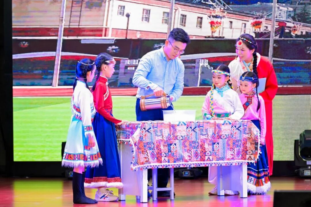 活动以“教育家精神”为主脉络,以“师德大课堂”串联起一代代芙蓉教师历年以来躬耕三尺讲台、专注教书育人的动人故事,展现出立德树人、奋发有为的时代风采。活动在“教育家语录诵读”微视频与教师合唱团深情演唱的《如愿》中拉开帷幕;故事讲述《成长,是一场向光而行的旅程》呈现了青年教师庄茗淇从教路上的活力与追求;情景剧《格桑花开处,教育有微光》真实再现了“管理先锋岗”援藏教师袁泽雄跨越山海、播种希望的教育情怀;诗舞校园剧《守望》生动诠释了“育人模范岗”孙建华老师以匠心与爱心静待花开的温暖守护;《30年坚守,体操房里的初心与使命》通过情景讲述,让观众感受到“教学示范岗”李芳老师三十载如一日的热爱与奉献;在活动尾声的仪式上,新教师接过退休教师亲笔寄语的贺卡,在场全体教师起立齐诵《芙蓉教师宣言》,让芙蓉教师之声在岁月流转中悠悠回响,让教育薪火在接力传承中熠熠生辉。