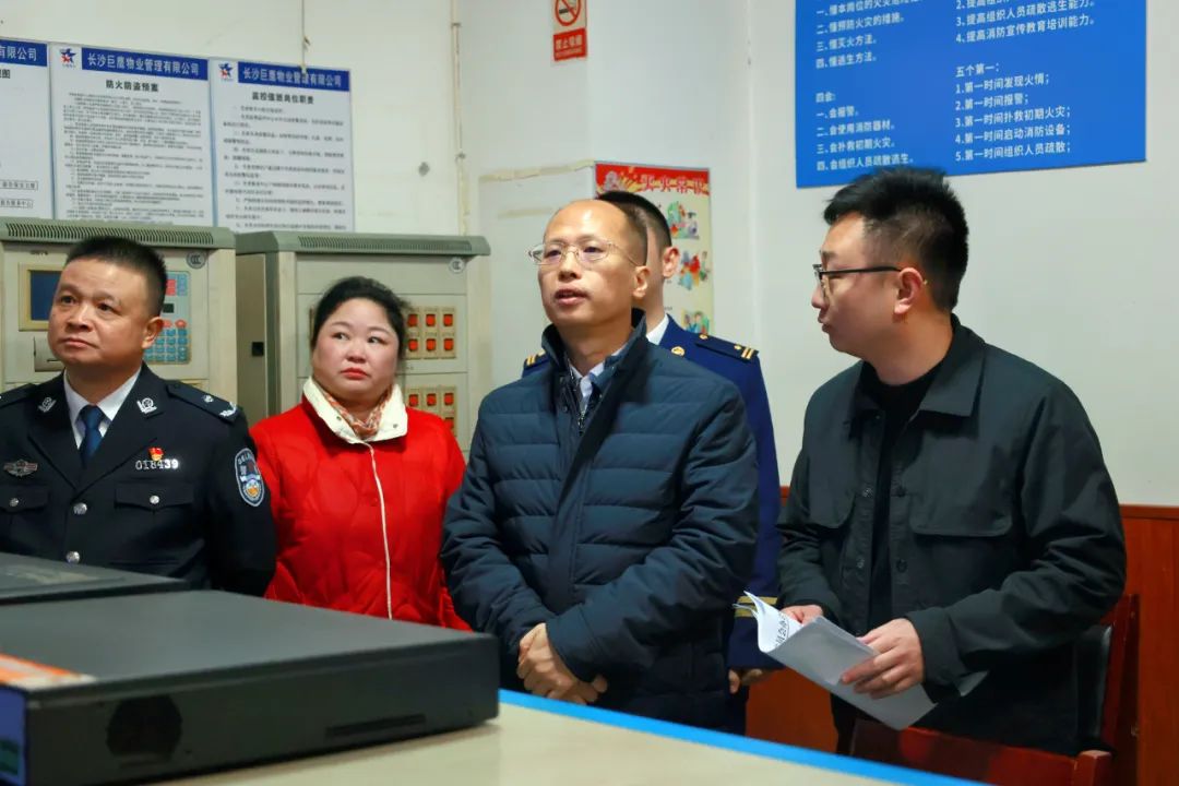 在东屯渡街道凯乐湘园二期、荷花园街道湘聚大厦、五里牌街道天扶华庭和文艺路街道识字里社区,周春晖走进物业中心、电动车停放区域、配电间、消防室、消防通道等区域,详细了解了消防设备运行、网格管理、电动车停放、电梯设施运行、固定充电棚建设工作等情况。周春晖指出,安全问题是重中之重,物业服务公司要强化自身责任意识和职责担当,要考虑居民群众实际生活需求开展工作,要加强宣传教育,引导居民安全用火用电,提高居民安全防范能力,同时要做好应急预案,严格进行自查自纠工作。网格员要加强与群众的联系,尤其注意独居老人等特殊群体的安全防护,积极发挥网格化管理作用。