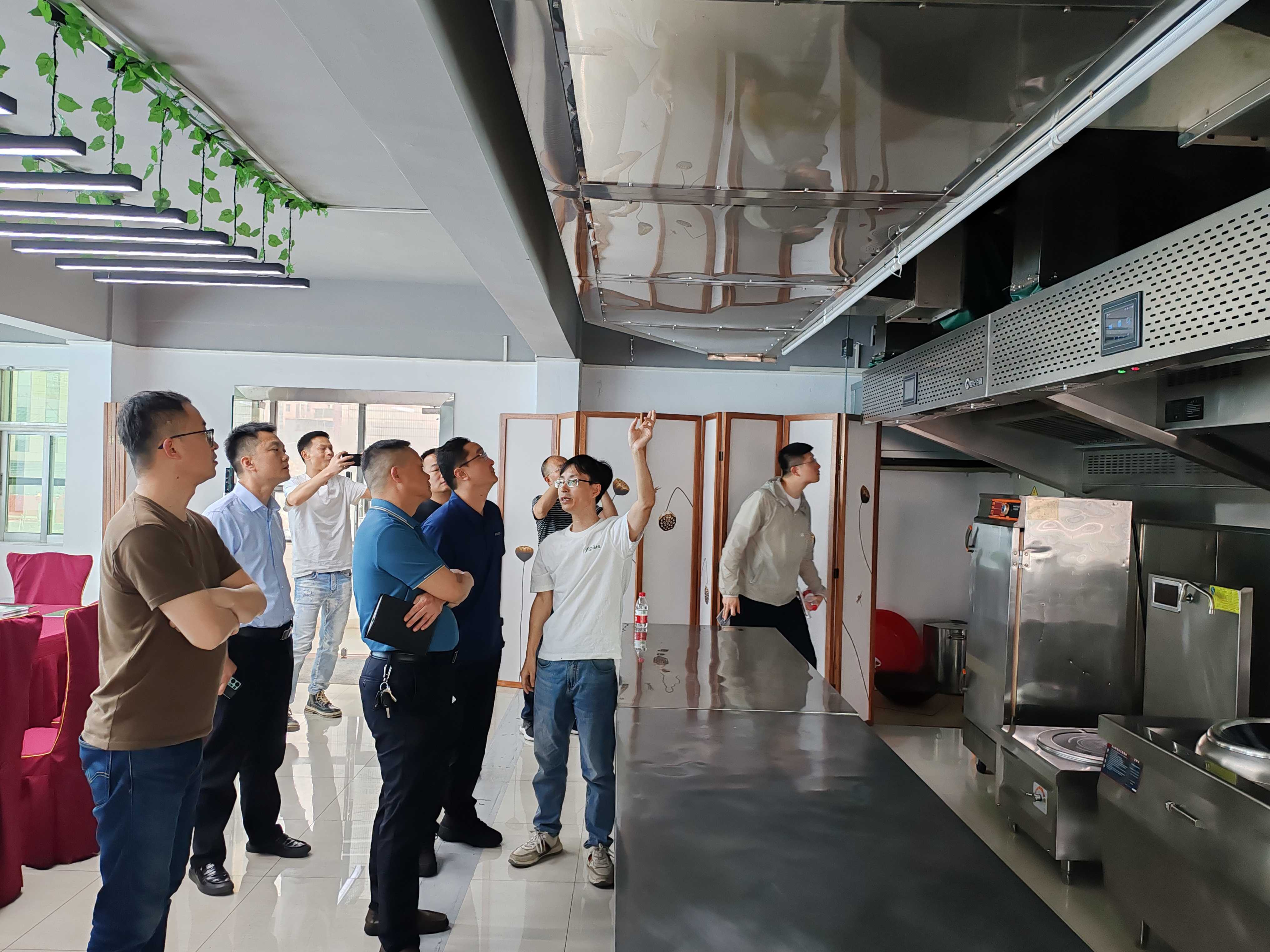 考察组通过座谈、实地察看和暗访调查等形式,深入学习了智慧化油烟综合治理模式,详细了解了UV光解、水幕阻挡、一键清洗、超低排放等新型餐饮油烟净化技术设施的性能、用途以及实际应用案例。