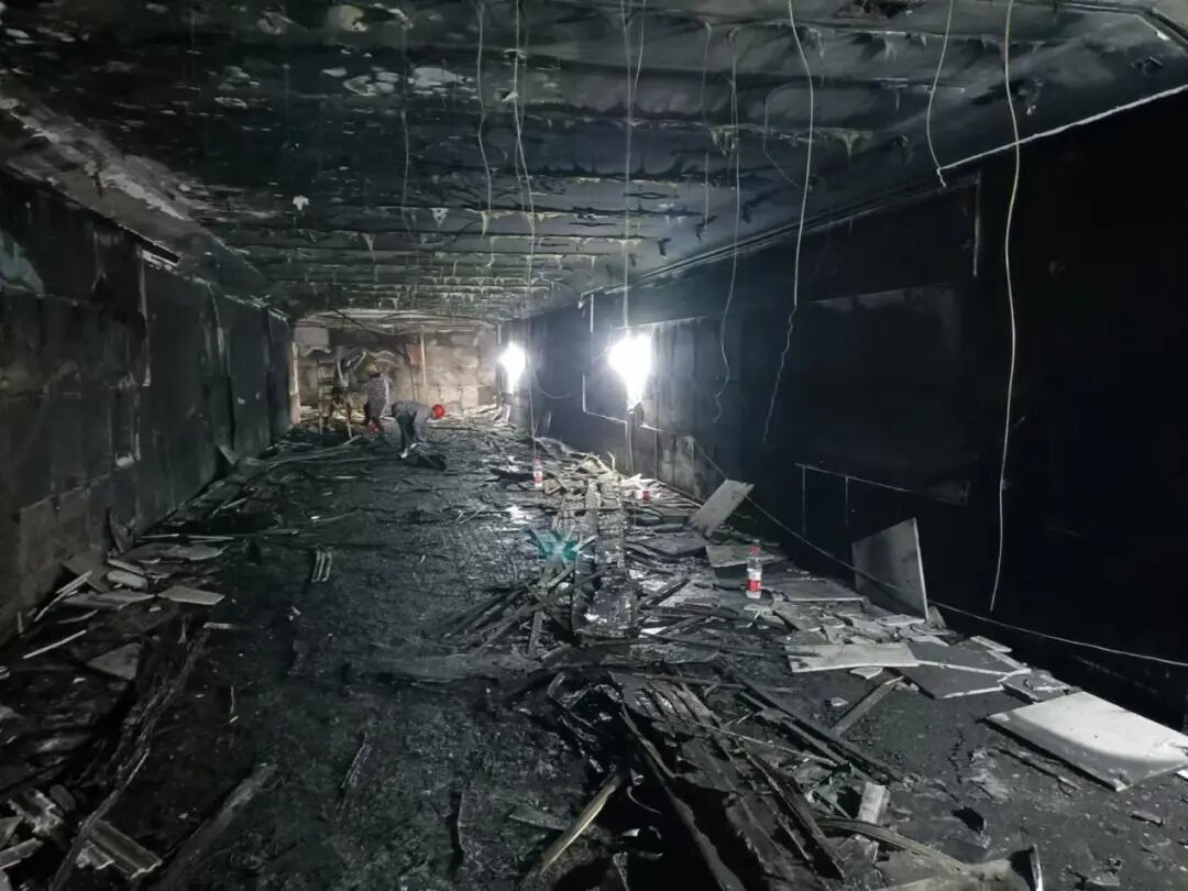 据悉,该地下通道位于乔庄社区韶山北路118号。芙蓉区文艺路街道乔庄社区党委书记朱鹏辉回忆,2023年3月13日晚10点40分许,地下通道内因电线老化起火引发火灾,当时通道顶部全部烧毁,外墙表皮都是被烟熏过的痕迹,底部还有大面积积水及焚毁垃圾,为进一步消除安全隐患,故将通道暂时封闭。
