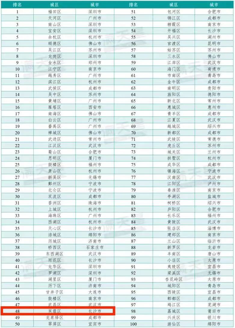 持续上升!芙蓉区上榜2024赛迪投资竞争力百强区